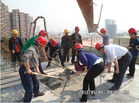 5月4日上午,由太原一建集團直屬分公司承建的萬柏林區(qū)青少年學生活動中心工程舉行了主體結構封頂儀式。該儀式由萬柏林區(qū)教育局副局長李玉成、萬柏林區(qū)教育局機械科科長高亮、青少年活動中心主任苗志榮、萬柏林區(qū)婦聯(lián)主席康衛(wèi)青等領導蒞臨參加。萬柏林區(qū)青少年活動中心工程作為2012年萬柏林區(qū)規(guī)劃建設的61項工程項目中的一號重點項目,得到了區(qū)教育局的大力支持。該工程自2011年10月1日開工至今天歷時123天。萬柏林區(qū)教育局副局長李玉成、活動中心主任苗志榮對施工單位能夠在場地狹小、工期緊迫、資金短缺等重重困難下提前高質量地完成主體封頂表示了肯定和贊揚,并希望分公司在今后的工作中繼續(xù)保持主體工程建設的激情,把主體結構封頂當做新的起點,堅持發(fā)揚團結合作、銳意進取的精神,精益求精、創(chuàng)造精品工程,確保該工程優(yōu)質高效如期完成,向下半年“中國共產黨第十八屆代表大會”的召開獻禮。