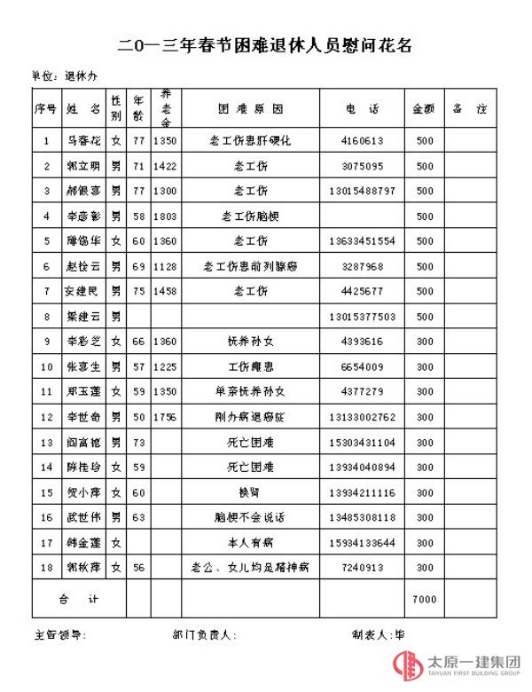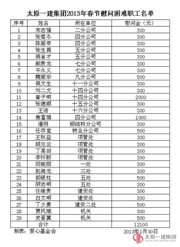 附:太原一建集團(tuán)2013年春節(jié)慰問(wèn)困難職工名單