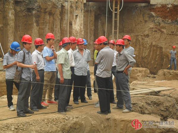 由四分公司承建的山西醫(yī)科大學(xué)第二醫(yī)院綜合住院樓項(xiàng)目正在進(jìn)行土方開挖施工,目前正值雨季,為避免已開挖基槽被雨水浸泡,于2013年6月18日上午在太原市質(zhì)量監(jiān)督管理站賈永華監(jiān)督員的監(jiān)督下,由監(jiān)理單位組織建設(shè)單位、設(shè)計(jì)單位、勘察單位、施工單位相關(guān)人員進(jìn)行1—5軸,A—J軸樁基驗(yàn)收及驗(yàn)槽,經(jīng)過(guò)對(duì)內(nèi)業(yè)資料、施工現(xiàn)場(chǎng)的檢查驗(yàn)收,賈工對(duì)所驗(yàn)收部位的資料及實(shí)體質(zhì)量給予充分的肯定,并要求繼續(xù)保持,真正體現(xiàn)太原一建集團(tuán)的實(shí)力,最后同意1—5軸,A—J軸樁基驗(yàn)收及驗(yàn)槽,可以進(jìn)行下一道工序施工。