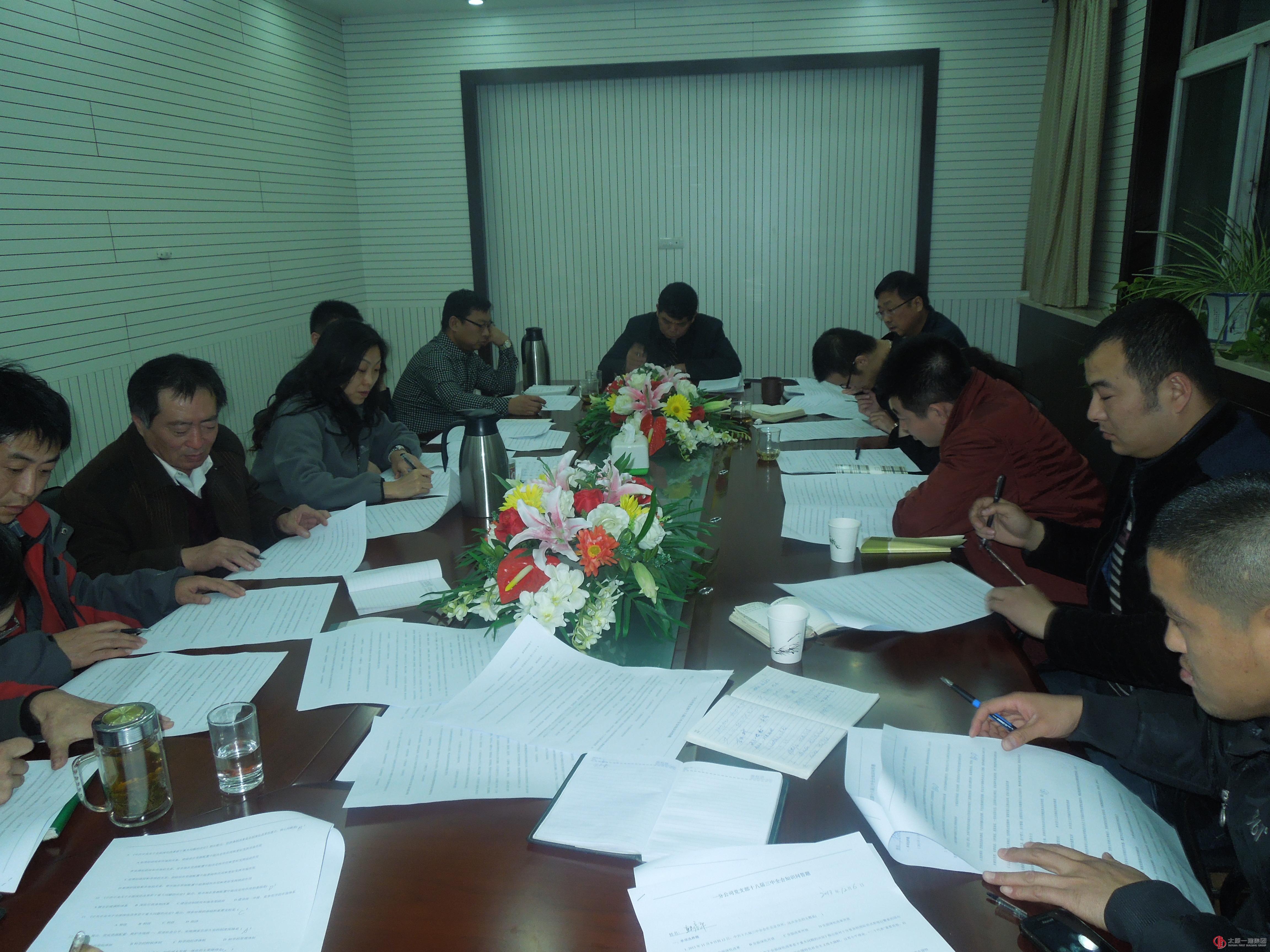 根據(jù)集團(tuán)公司黨委13號(hào)文件精神,2013年12月5日下午,一分公司召開(kāi)黨支部擴(kuò)大會(huì)議。會(huì)上,支部書(shū)記張玉喜對(duì)十八屆三中全會(huì)《決定》進(jìn)行了全文的輔導(dǎo)解讀,提出了一是管理是定出來(lái)的,技能是練出來(lái)的,辦法是想出來(lái)的,潛力是逼出來(lái)的;二是沒(méi)有做好就不要回避,不要找任何借口;三是結(jié)果不好,就等于工作沒(méi)做好;四是沒(méi)有執(zhí)行力就沒(méi)有競(jìng)爭(zhēng)力;五是敢于負(fù)責(zé)任,才能擔(dān)當(dāng);六是員工常出差錯(cuò),就是管理讓他出錯(cuò);七是改變痛苦,不改變更痛苦;八是每天做好三件事:必須做的事、應(yīng)該做的事和可以做的事與大家共勉。為了便于消化吸收,加深記憶,最后進(jìn)行了知識(shí)問(wèn)答測(cè)試。分公司全體黨員、機(jī)關(guān)全體參加會(huì)議,張玉喜主持會(huì)議。