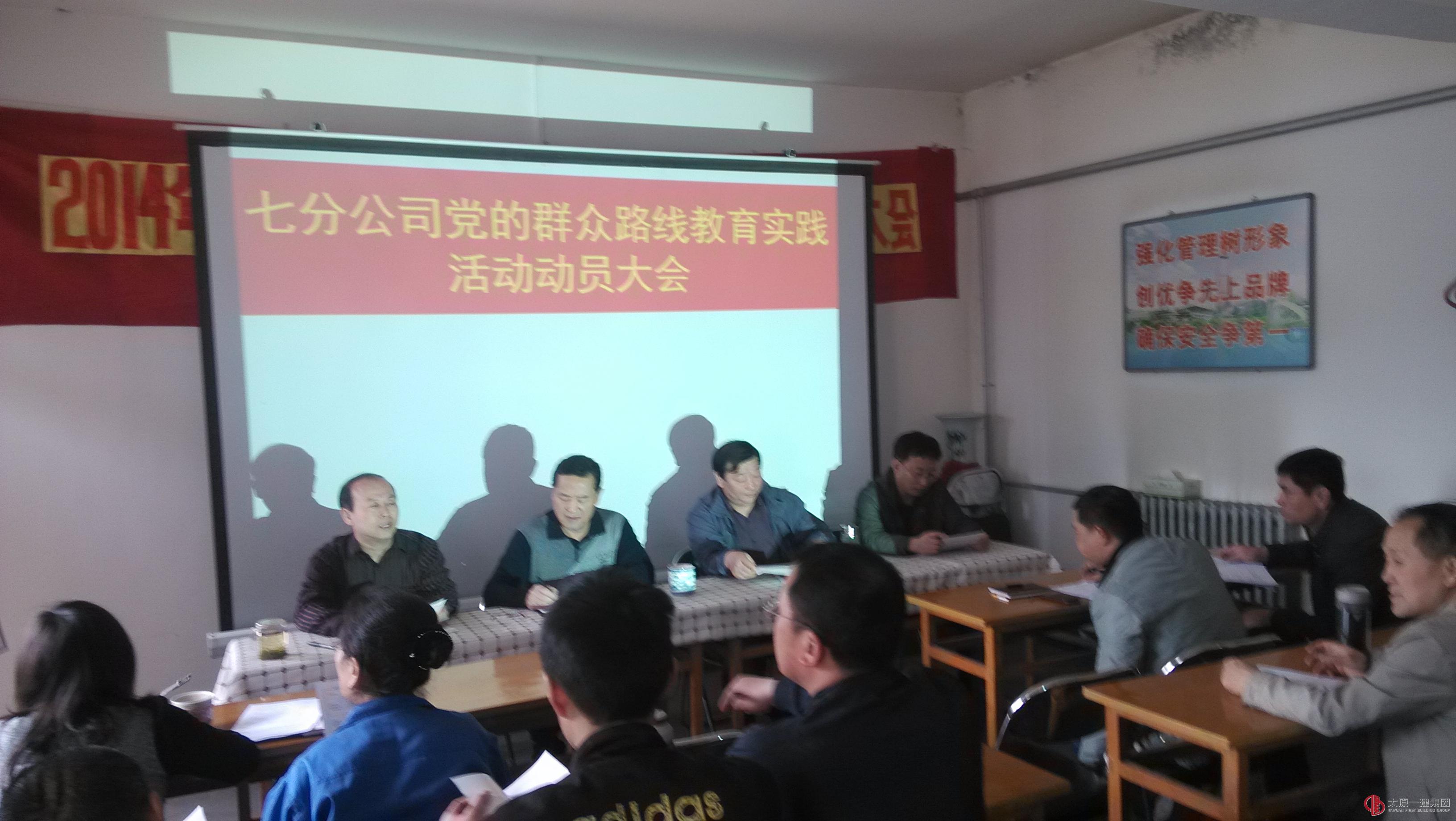 七分公司響應集團公司號召,于2014年4月1日召開了《黨的群眾路線教育實踐活動動員會議》,集團公司黨委委員、總工程師、第七督導組組長路志旭出席并講話。會議由七分公司支部書記郭建新主持,副書記弓馬威,副經理鄭江峰、武志文、王福等20余人出席。
