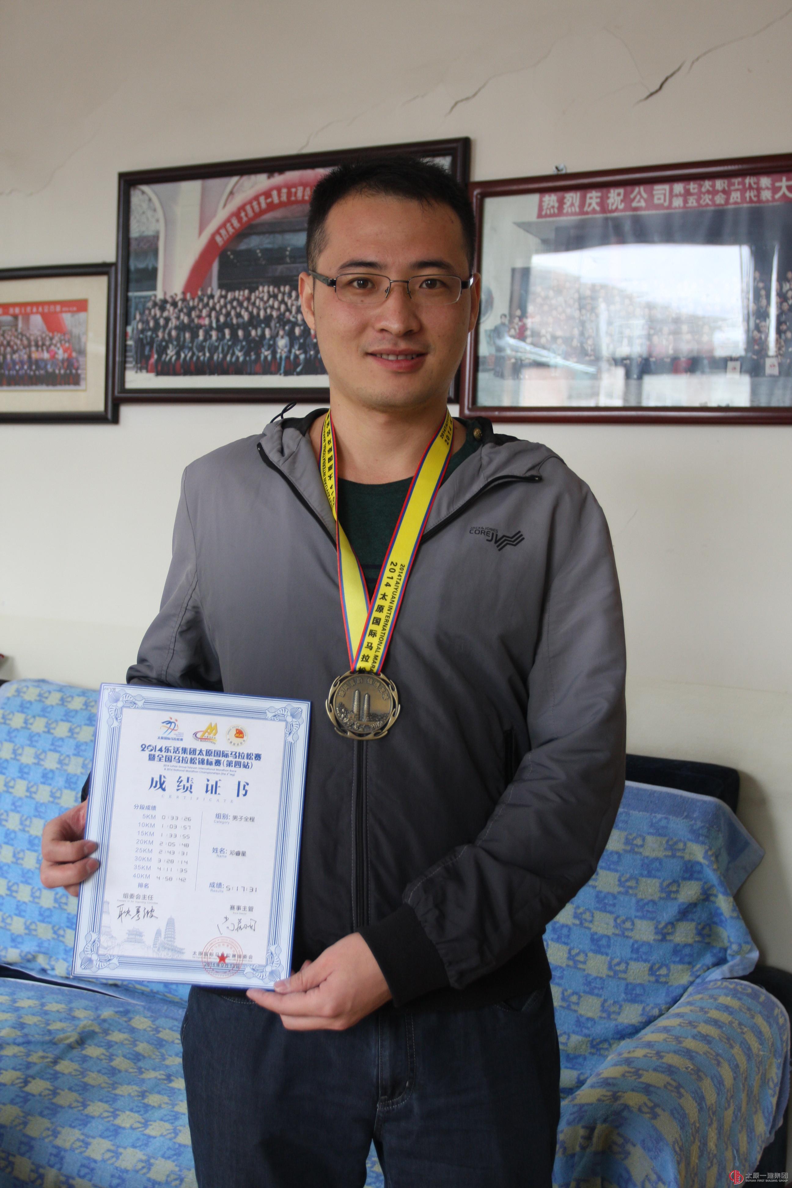 2014年9月13日上午8點,第四屆太原國際馬拉松賽如期在長風商務區鳴槍起跑,集團公司勞務中心青年員工鄧睿星報名參加了全程馬拉松(42.195公里),并順利的完成了全程比賽。成為集團公司參加馬拉松并完賽的第一人。望明年的馬拉松比賽集團公司員工踴躍報名,把這太原一建的良好形象宣傳出去,展現一建人風采。