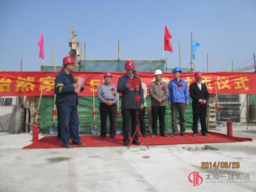 10:38,封頂儀式在5#樓的樓頂舉行,第三施工標段的現(xiàn)場負責人徐建昌致開幕詞,他感謝了前來參加封頂儀式的各位領導、同仁和工友,并介紹了5#樓的施工情況,并感謝業(yè)主方與集團公司給予的幫助指導。項目經(jīng)理趙人和代表項目部全體人員進行了講話,他首先祝賀5#樓的封頂,同時表揚了第三施工標段在艱苦的環(huán)境下能夠克服千難萬險完成主體施工任務,為中海佳園公司和太原一建集團贏得了榮譽,希望第三標段再接再厲,在之后的二次結(jié)構(gòu)施工中加大管理力度,保證施工質(zhì)量,更要確保施工安全,為全小區(qū)的建設再立新功。中海佳園公司總經(jīng)理董全民宣布封頂儀式正式開始。