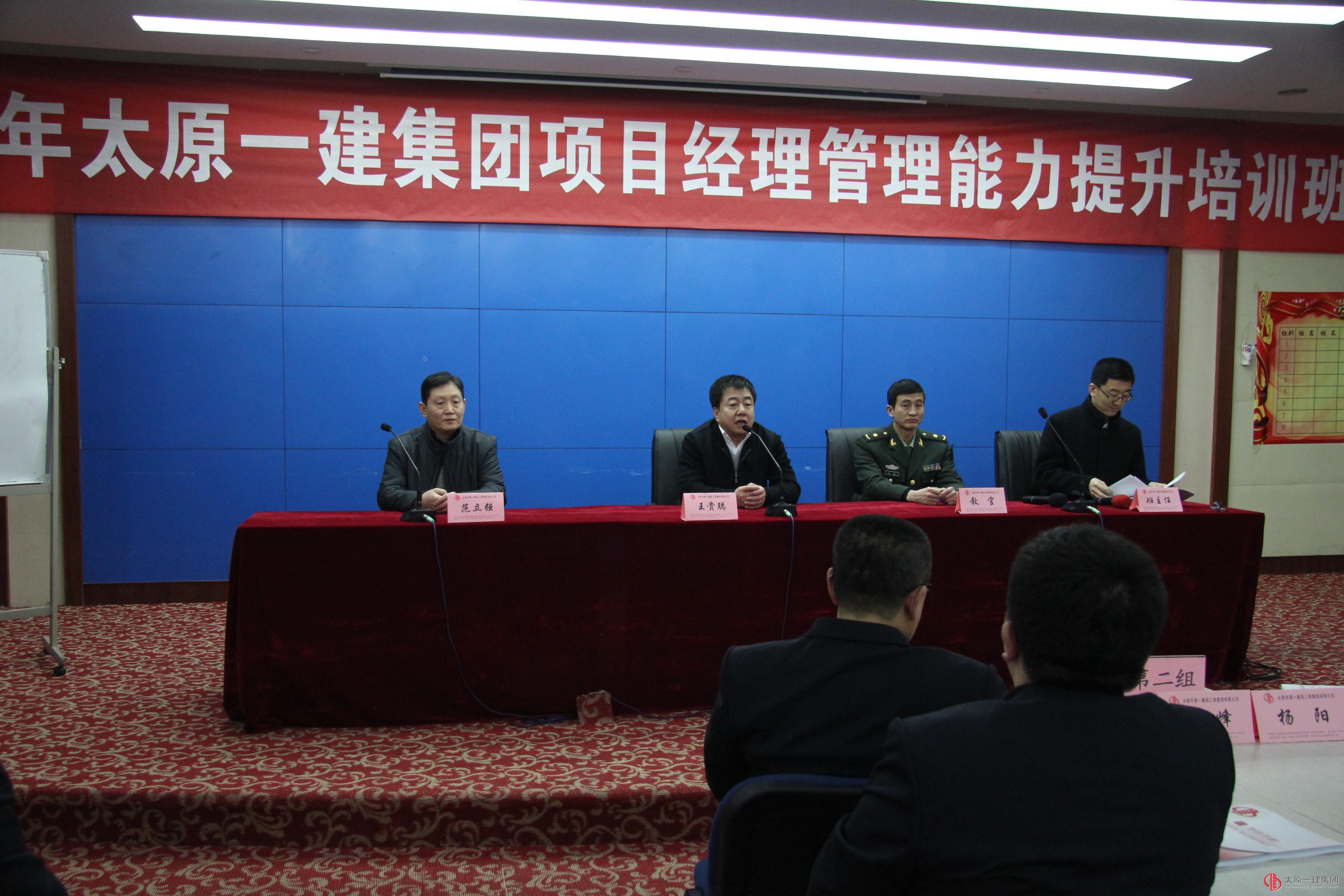 瑞雪迎春到,羊年新風貌,2015年太原一建集團項目經理管理能力提升培訓于2月27日-3月1日在山西省郵電學校全封閉進行。在開班儀式上,集團公司董事長、黨委書記、總經理王貴聰做了動員講話,他指出項目經理在集團公司所處崗位的重要性,并勉勵大家要努力學習,把學習當成一貫性的事情來做,并預祝本次培訓收到良好的效果。監(jiān)事會主席、人力資源部部長范立強參加了培訓動員并對工作人員作出了具體要求。