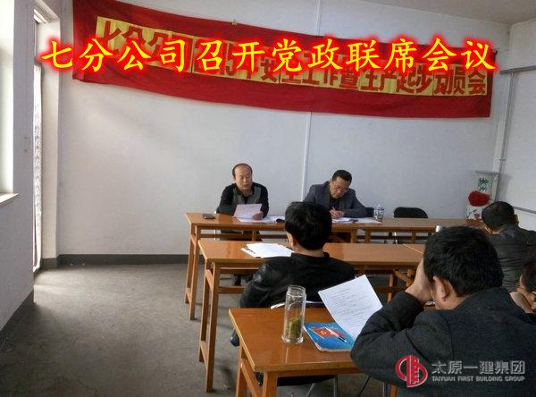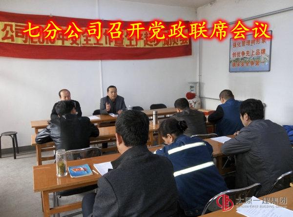 3月30日下午2:30,七分公司召開黨政聯(lián)席會議,會議由分公司經(jīng)理郭建新主持,分公司副經(jīng)理、項(xiàng)目經(jīng)理、科長等12人參加。