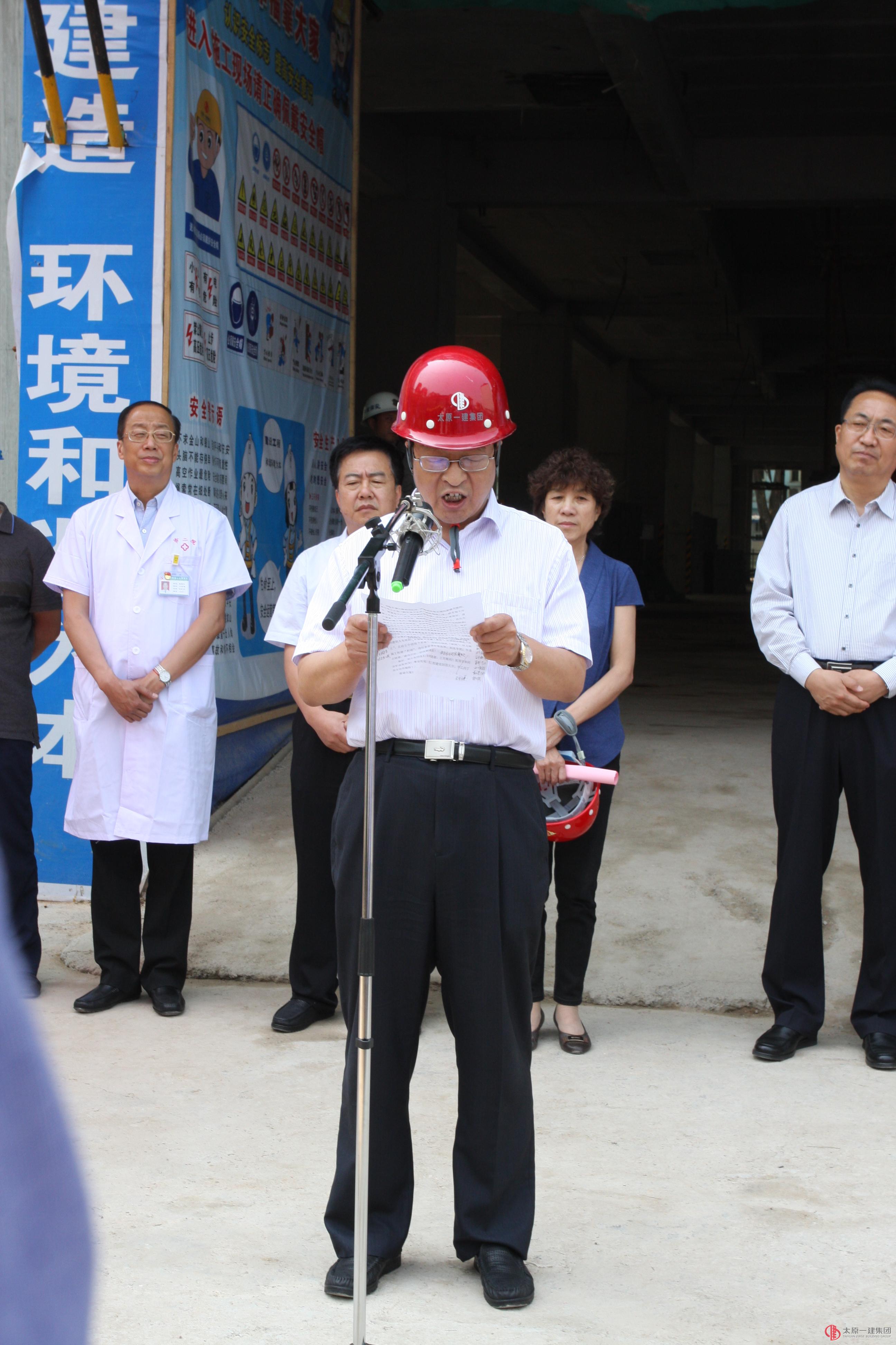 5月27日上午,在這個時值初夏、灼風拂面的時節,太原一建集團十分公司承建的太原市第二人民醫院老年病綜合樓項目舉行封頂儀式,現場密布彩幅、充滿喜慶。太原市衛生局、山西大城工程項目管理有限公司、山西天地衡建設工程管理有限公司、太原一建集團公司領導王貴聰、宋雙玉以及十分公司范錦賢等領導出席儀式,市二院廣大職工和奮戰在施工一線的全體工友一并參加。儀式由太原市衛生局紀委書記侯士軍主持。一、太原市第二人民醫院院長李玉杰就老年病綜合樓工程項目建設進展情況作了通報,并對各參建單位與有關人員表示衷心的感謝!二、集團公司副董事長宋雙玉作講話,他指出:項目工程主體的封頂是十分公司、項目部和全體參建單位共同努力的成果,并相信此項工程一定可以再創一項山西省建設工程最高獎—汾水杯工程。但是,項目主體的封頂只是階段性的告捷,并不意味著質量安全和管理服務的封頂,它標志著該工程將進入精細化施工階段,我們后續的任務還很重,我們應該緊密團結、攜手合作、建功立業、創造新成就!三、山西大城工程管理有限公司項目總監程建設發言。四、太原市衛生局局長郝寶清講話并宣布太原市第二人民醫院老年病綜合樓主體工程封頂!最后,全體參會人員一同進入項目工程的樓頂,大家興高采烈地紛紛拿起鐵鏟為屋頂澆灌了封頂的混凝土,當最后一鏟混凝土灌滿時,在大家熱烈的掌聲中,圓滿完成了太原市第二人民醫院老年病綜合樓主體工程封頂!