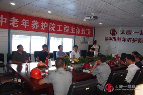 2015年8月3日,第二項目工程管理處承建的“晉中市老年養護院項目”主體結構順利封頂。參加封頂儀式的有:晉中市民政局局長李建平、晉中市建設局代建辦主任杜毓格、代建單位晉中市建筑勘察設計院院長高曉東、山西新盛建設監理有限公司總監理工程師楊秋收、太原市第一建筑工程集團有限公司董事長王貴聰和集團公司常務副總經理張歧泰、集團公司董事王斌、副總經理李偉、總經理助理陳斌及項目部全體成員。