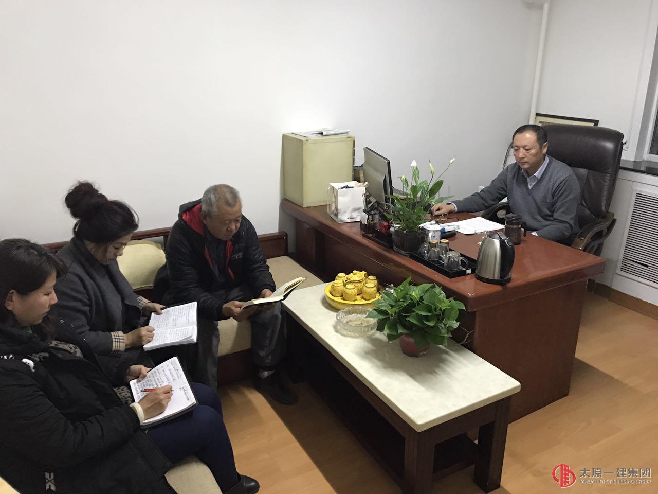 11月24日下午十五分公司召開黨政領導班子會議,會上齊建國同志傳達了11月23日集團公司第四季度黨群工作會議精神,根據集團公司黨委副書記宋雙玉對當前工作提出的要求1、把學習、宣傳、貫徹黨的十八屆六中全會精神抓好;2、把年末歲出例行性的黨群工作做好;3、把黨群工作的隊伍建設好。黨支部書記分公司經理楊文生作了具體安排,要求不折不扣地按照集團公司會議精神貫徹落實,把組織發展,“兩學一做”學習教育,第三屆“好員工、好團隊、好家庭”評選活動,四項建設以及大病醫療保險幫扶工作做好,以黨建工作促進施工生產更上一層樓。