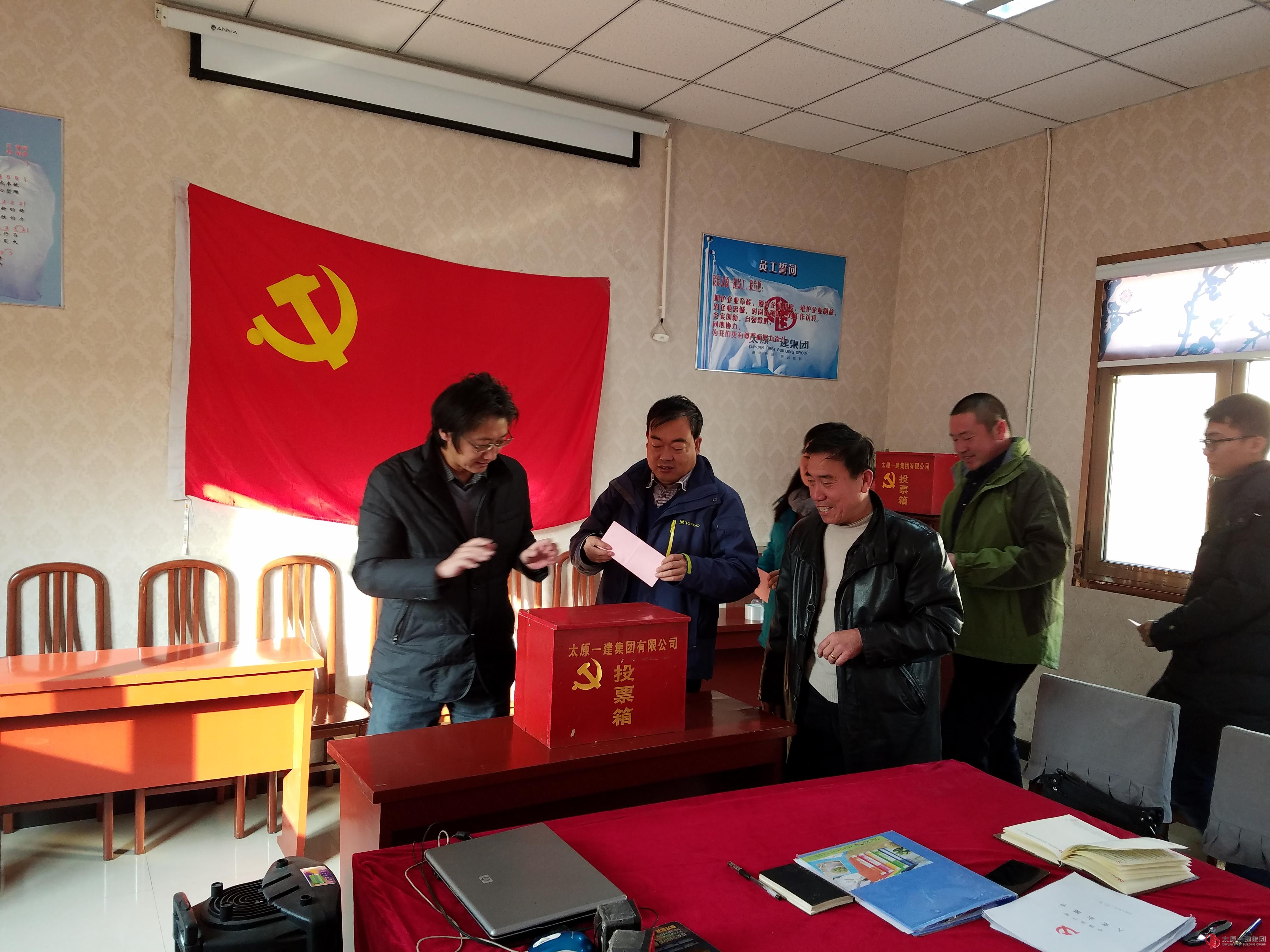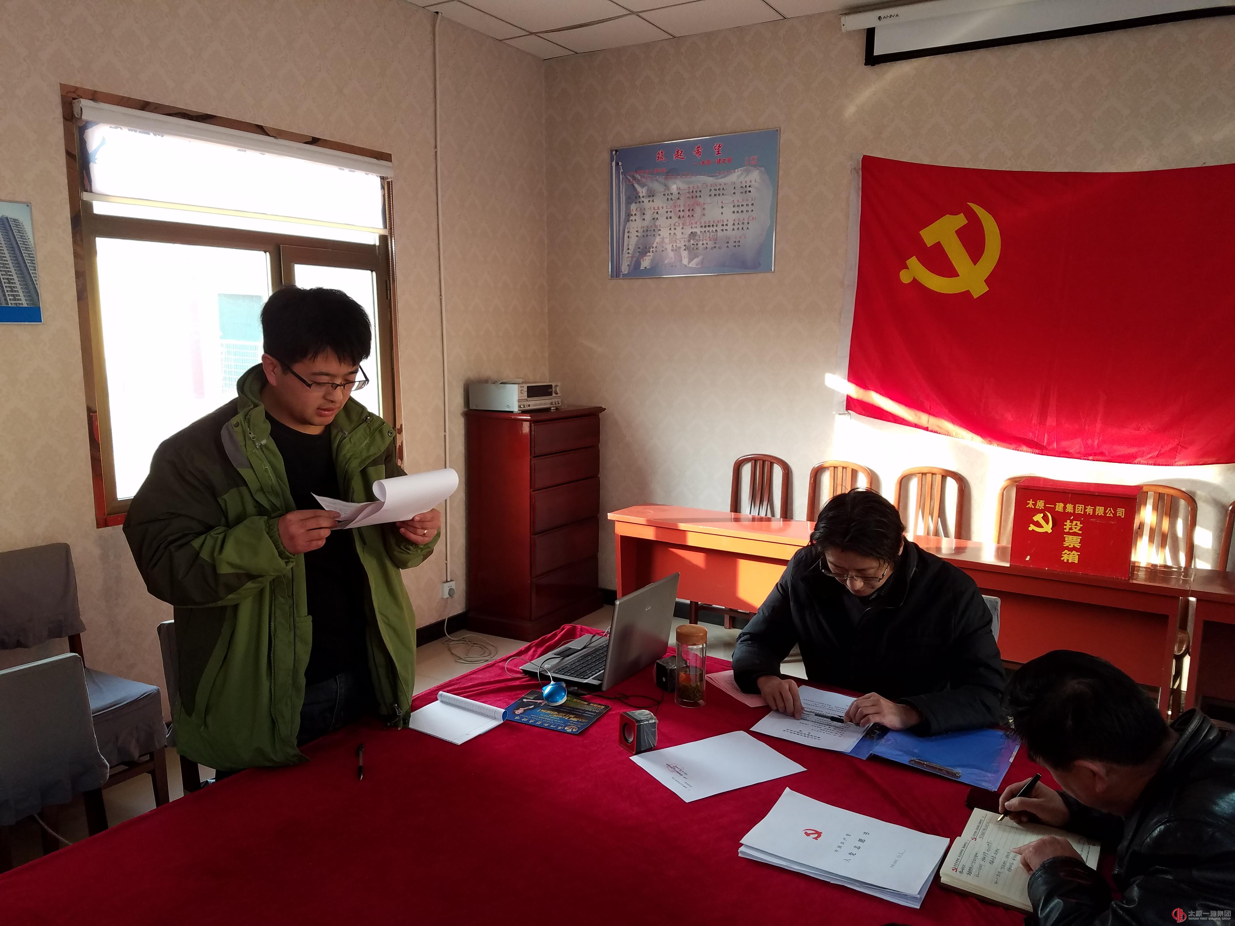 12月17日上午,六分公司黨支部在機關會議室召開黨員大會,討論表決預備黨員陳宏按期轉正為中共正式黨員問題,會議室正上方懸掛著鮮紅的黨旗。
