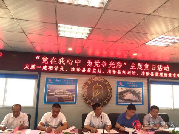 按照集團公司黨建工作安排,把黨課講進工地、講到項目部的要求。2018年6月10日上午,項目工程管理處黨支部在清徐縣采煤沉陷區(qū)整村搬遷項目部開展“黨在我心中、為黨增光彩”主題黨日活動。其目的:黨建進工地、引領促發(fā)展,踐行黨建結合、共創(chuàng)精品工程。參加本次黨日活動的有集團公司黨委副書記宋雙玉、清徐縣住建局黨委委員、副局長孟連柱、項目工程管理處、清徐縣質量安全監(jiān)督站、清徐縣城鄉(xiāng)勘測設計所、清徐縣建筑工程監(jiān)理所四個黨支部的黨員和部分入黨積極分子共43人參加了主題黨日活動。主題黨日活動由項管處黨支部書記李朝峰主持。會議議程共有七項: