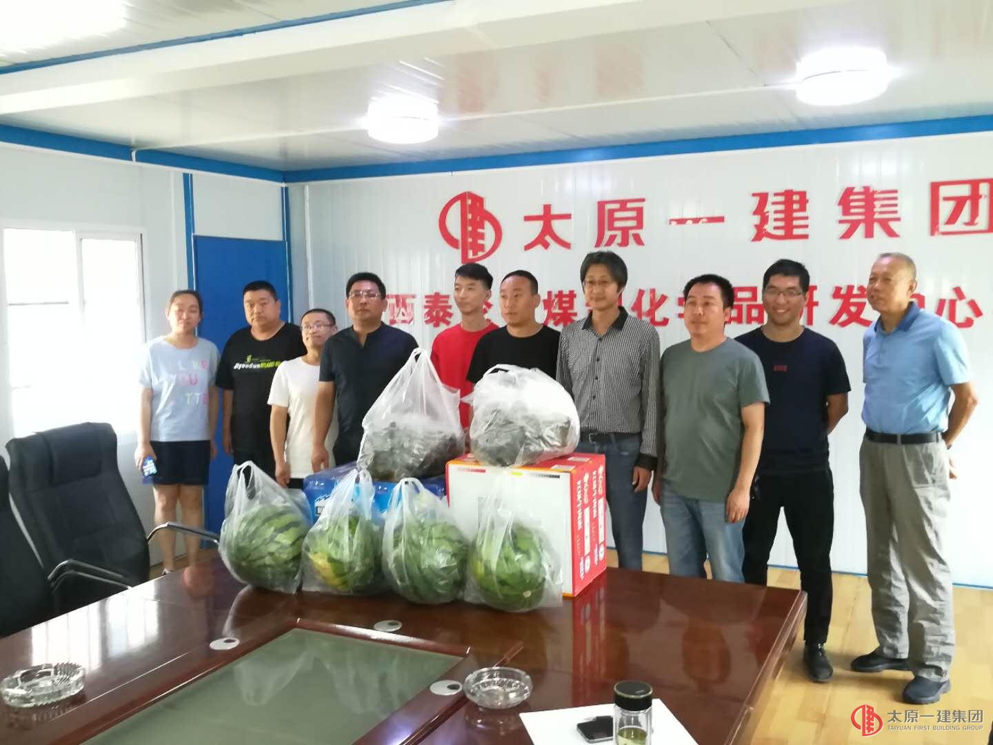 6月15日上午,在端午節即將來臨之際,二分公司黨支部書記孫慶福、經理劉海飛帶著粽子、西瓜、豬肉、飲料等慰問品到泰倫特項目部看望慰問了奮戰在一線的項目部管理人員和農民工朋友,在炎熱的夏季為他們送去了一絲清涼和濃濃的節日祝福。
