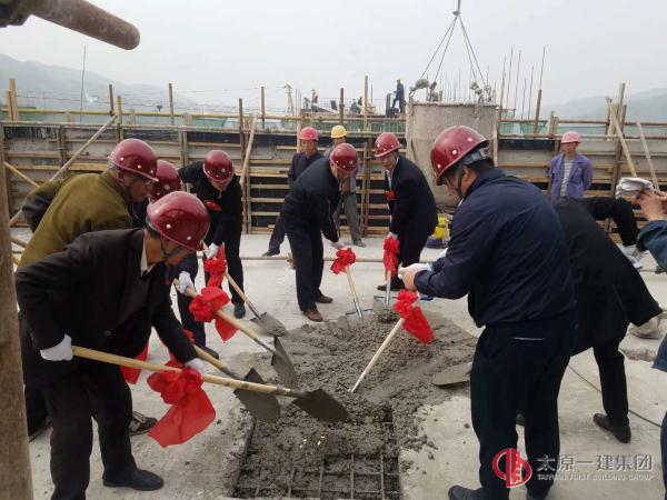 該項目在主體結構施工階段代表鄉寧縣接受了中央環保部累計5次的綜合監督檢查,省市質量安全大檢查多次,均受到了上級部門的一致好評。該項目主體工程觀感質量為鄉寧縣標桿工程,主體施工過程中得到了建設單位、設計單位、監理單位及當地質量安全站、住建局及當地縣委縣政府的充分肯定認可,為太原一建在鄉寧縣樹立了一面大旗。封頂儀式結束后,李世雄總經理組織項目部全體管理人員召開了項目動員大會,李總對項管處、七星華庭項目部主體施工階段中項目組織管理工作給予了充分的認可和表揚,要求項目部一定要再接再厲,將該項目建成精品工程、優質工程、業績工程。分管領導司中謙、副董事長宋雙玉分別對項目部下一部具體工作及宏觀把控進行了動員安排,項管處處長李朝峰代表項管處及項目部做了堅定創優信念的表態發言。會后集團公司領導與項目部全體管理人員合影留念。