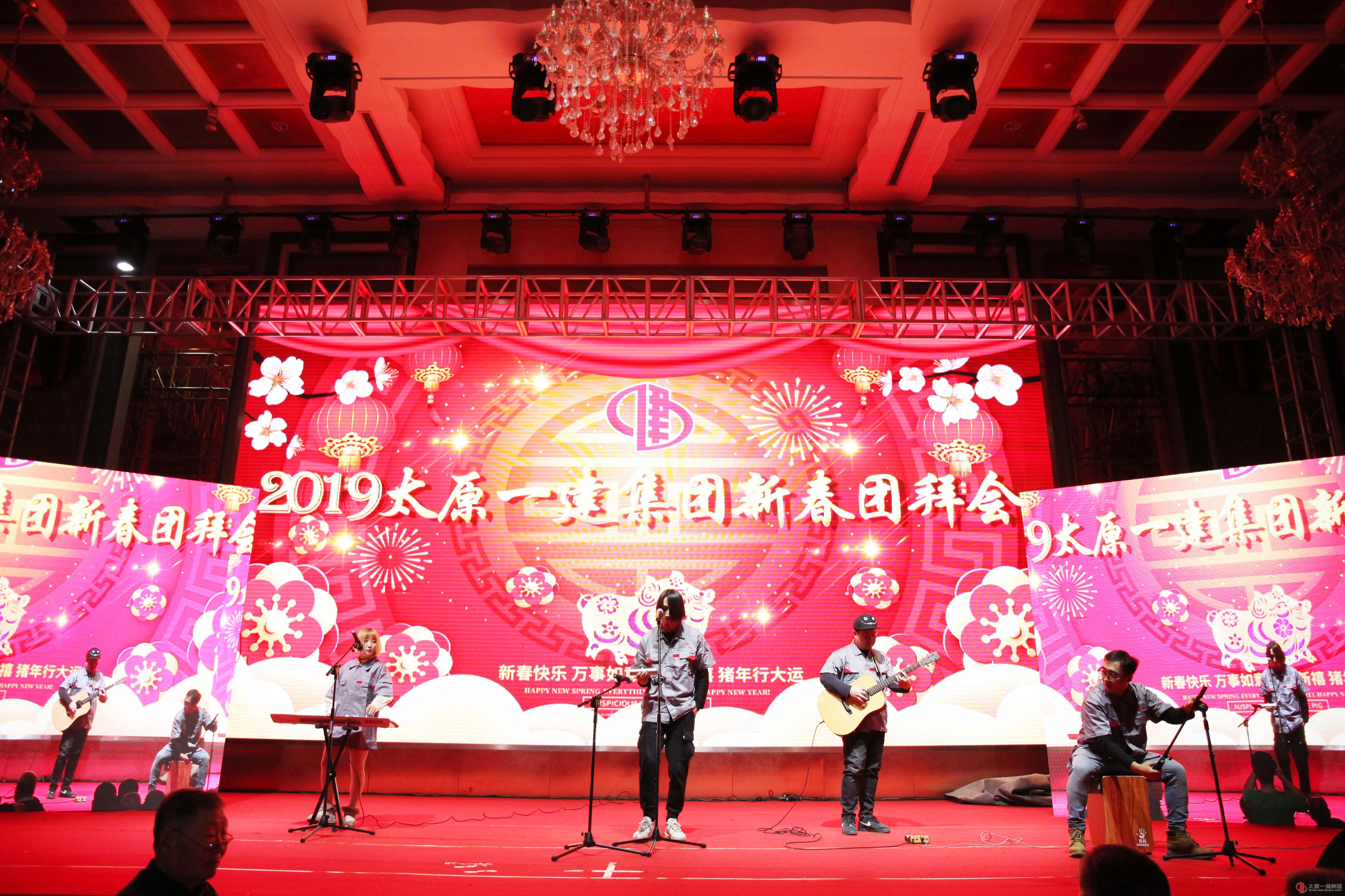 在項目工程管理處的《鼓樂迎春》鑼鼓聲中聯歡拉開序幕。今年聯歡活動規模空前,共有17個單位的27個節目先后登場,晚會節目精彩紛呈。涵蓋鼓樂、小品、歌舞、相聲、獨唱、合唱、情景劇等類型節目,有的歡聲笑語、有的感人至深,充分展現了一建兒女“奮斗新時代,爭當追夢人”的決心,為團拜會現場帶來了濃濃的年味。抽獎環節各個引人入勝,今年抽獎采用微信互動的方式一一抽取,特等獎1000元現金大獎采取手機搖一搖的方式最終花落項目工程管理處李世仁手中,董事長王貴聰親自為他送上現金紅包。當領導班子全體與120名演職人員一起高歌《我和我的祖國》時,現場全體人員鏗鏘有力的喊出了“我能行、我必行”的口號,氣氛達到了高潮,作為一建人的自豪感油然而生,對太原一建未來發展充滿信心。在祝酒環節,工會主席李瑞琪言簡意賅,感染力十足的祝酒詞,把團拜會再次推向高潮,這正是:“一建團拜日、家人大團聚、歌舞迎新春把酒慶佳節、展望新規劃,放眼新時代。”