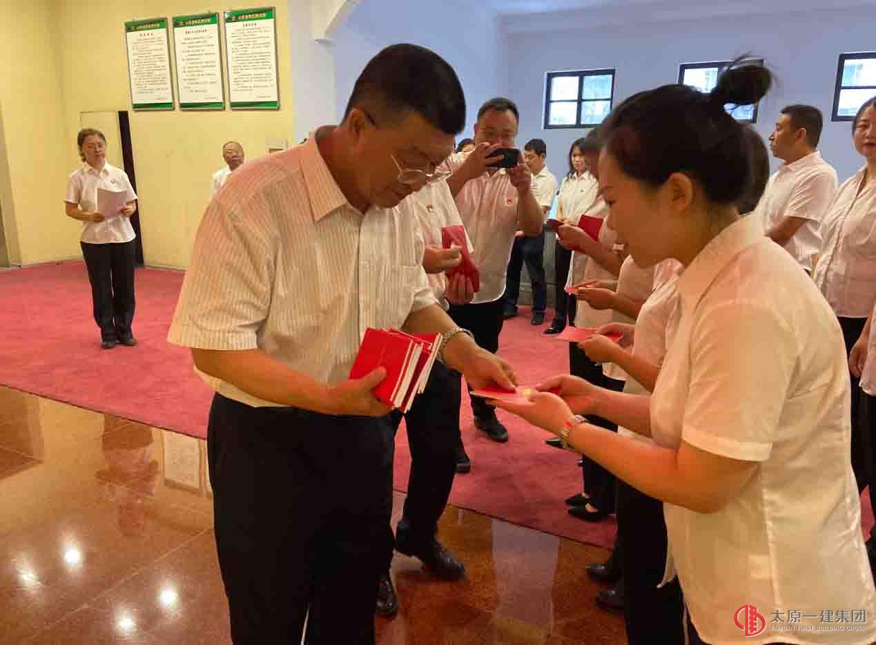 黨委副書記宋雙玉代表黨委作了重要講話,在對新黨員表示祝賀的同時,對相關黨支部提出要繼續抓好對預備黨員培養教育考察的要求,并寄予預備黨員殷切希望,希望同志們不要辜負黨組織的期望,不僅在組織上入黨更要在思想上入黨,要牢記入黨日子,牢記入黨誓詞,牢記黨的宗旨,牢記黨的使命,發揚黨的優良傳統,立足本職崗位創先爭優,充分發揮先鋒模范作用,認真貫徹落實好上半年經濟分析會議精神,把企業“六保四提”和六條主要工作措施落到實處,提速三季度,沖刺下半年,為完成全年目標任務努力奮斗,做合格的共產主義戰士。隨后,兩位黨委領導分別為預備黨員贈送黨章和黨員徽章。