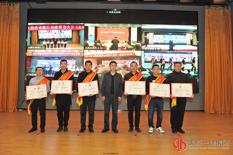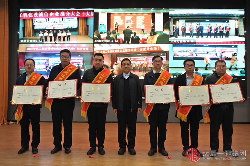 太原一建集團黨委書記、董事長王貴聰榮獲“工程建設行業誠信企業家”榮譽稱號;薛軍、張晉峰兩名同志榮獲“2021年度工程建設誠信項目經理”榮譽稱號!集團公司黨委副書記、總經理李世雄受邀參加太原分會場會議并作為企業代表出席頒獎儀式。