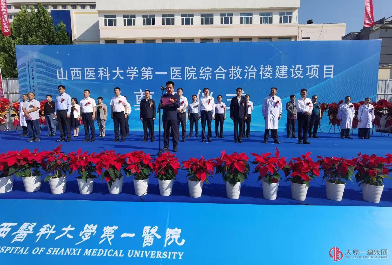 9月12日上午,由太原一建集團承建的山西醫科大學第一醫院綜合救治樓建設項目舉行開工奠基儀式。山西醫科大學校長解軍、山西省衛健委副主任張波、山西省發改委二級巡視員霍喜福、山西省醫保局副局長馮智、山西省財政廳社保處處長劉國宏、迎澤區區長趙學軍、山西醫科大學第一醫院黨委書記徐鈞,太原一建集團黨委書記董事長王貴聰、總經理李世雄、黨委副書記李瑞琪、常務副總經理趙峰、副總經理李偉,山西省建設監理公司董事長張建安出席開工典禮。委直各醫療衛生機構黨政領導,所屬各參建單位主要負責人及項目管理人員等共計100余人參加。開工典禮由山西醫科大學第一醫院院長張瑞平主持。