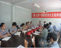 5月17日上午9:00集團公司副總經理宋雙玉、總經理助理李隆帶領集團公司工程管理部、質量安全部等有關部門負責人,在太原市第三人民醫院門診樓工程項目部召開首次交底例會和企業新CIS視覺識別系統現場試點項目授牌儀式,直屬分公司經理郭貴法和本項目部全 體管理人員參加會議。會議由工程管理部副部長王飛主持。